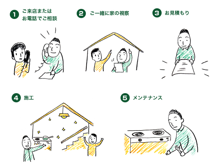 ちょっとした修理から電気に関するリフォーム・取り付け 工事まで、電気に関する工事・修理を承っています。 また、点検やご相談のみも受け付けております。 気兼ねなくお問い合わせください。